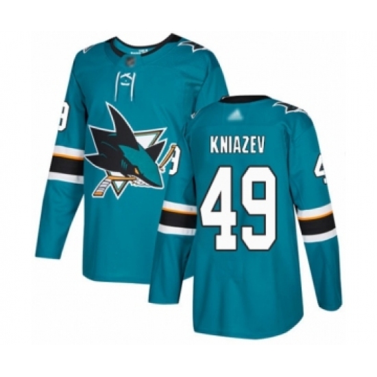 >Youth San Jose Sharks #49 Artemi Kniazev Authentic Teal Green Home Hockey Jersey