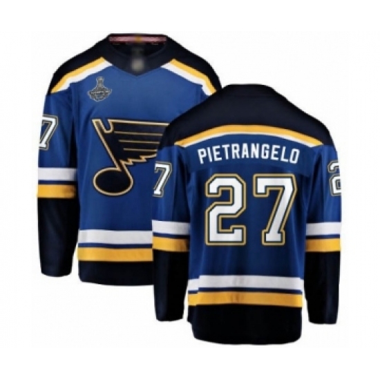 Men's St. Louis Blues #27 Alex Pietrangelo Fanatics Branded Royal Blue Home Breakaway 2019 Stanley Cup Champions Hockey Jersey