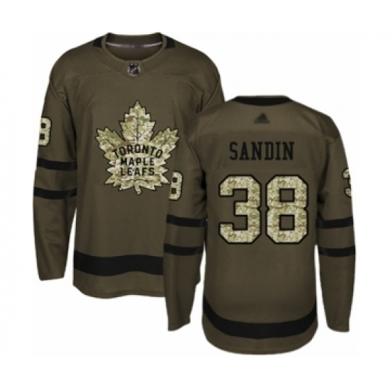 >Youth Toronto Maple Leafs #38 Rasmus Sandin Authentic Green Salute to Service Hockey Jersey