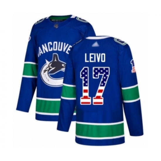 >Youth Vancouver Canucks #17 Josh Leivo Authentic Blue USA Flag Fashion Hockey Jersey