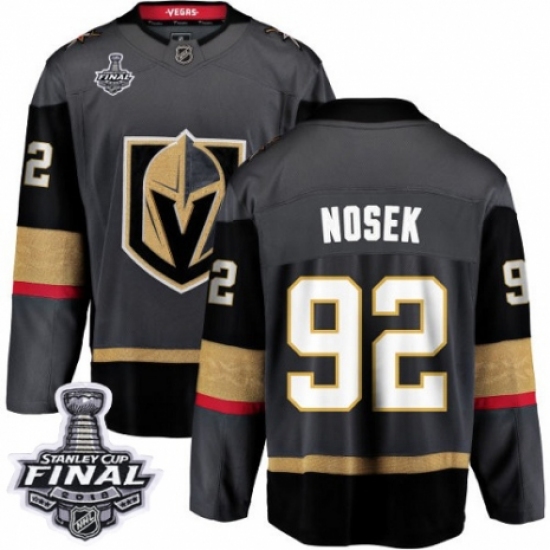 Youth Vegas Golden Knights #92 Tomas Nosek Authentic Black Home Fanatics Branded Breakaway 2018 Stanley Cup Final NHL Jersey