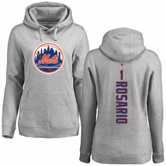 >MLB Women's Nike New York Mets #1 Amed Rosario Ash Backer Pullover Hoodie