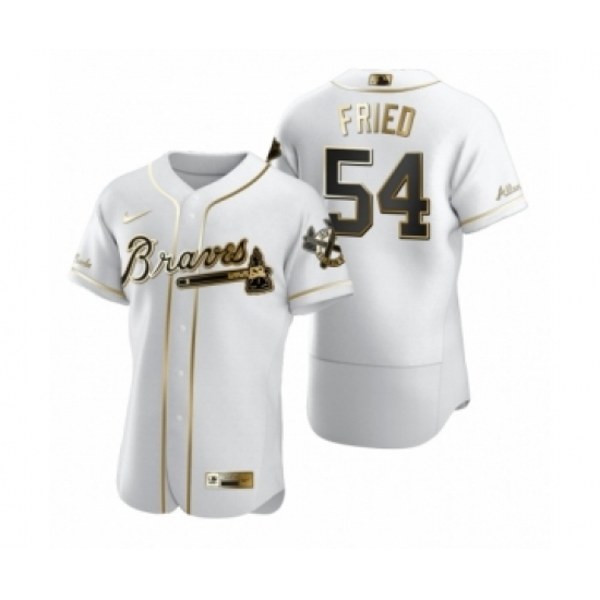 >Men Atlanta Braves #54 Max Fried Nike White Authentic Golden Edition Jersey