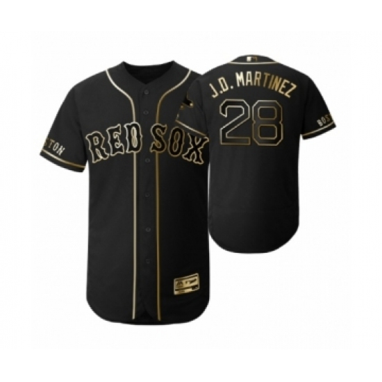 Men's 2019 Golden Edition Boston Red Sox Black #28 J.D. Martinez Flex Base Jersey
