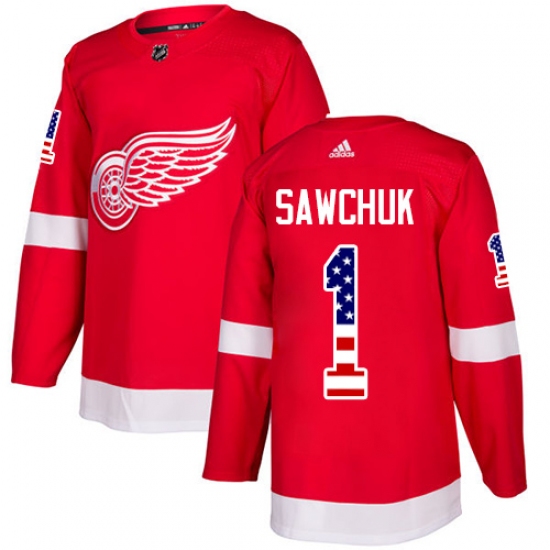 Home>NHL>Detroit Red Wings>Terry Sawchuk>Men's Adidas Detroit Red Wings #1 Terry Sawchuk Authentic Red USA Flag Fashion NHL Jersey