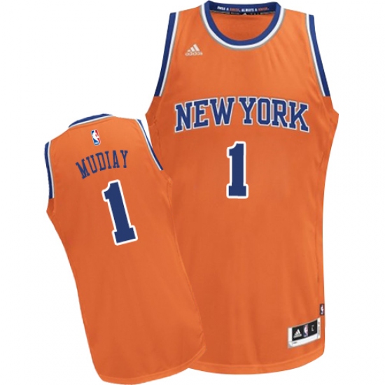 Home>NBA>New York Knicks>Emmanuel Mudiay>Men's Adidas New York Knicks #1 Emmanuel Mudiay Swingman Orange Alternate NBA Jersey