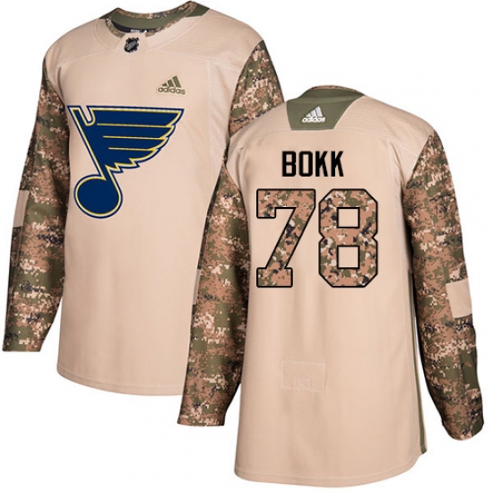 >Men's Adidas St. Louis Blues #78 Dominik Bokk Authentic Camo Veterans Day Practice NHL Jersey