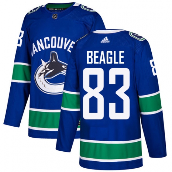 >Men's Adidas Vancouver Canucks #83 Jay Beagle Authentic Blue Home NHL Jersey