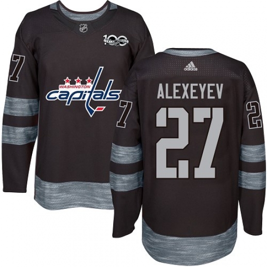 >Men's Adidas Washington Capitals #27 Alexander Alexeyev Authentic Black 1917-2017 100th Anniversary NHL Jersey