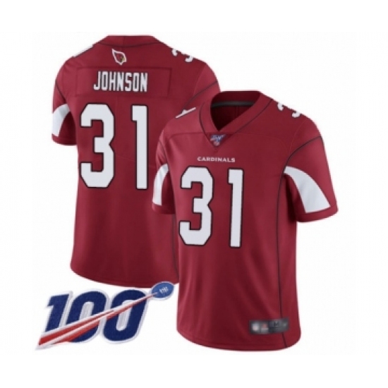 >Men's Arizona Cardinals #31 David Johnson Red Team Color Vapor Untouchable Limited Player 100th Season Football Jersey