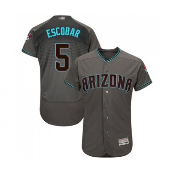>Men's Arizona Diamondbacks #5 Eduardo Escobar Gray Teal Alternate Authentic Collection Flex Base Baseball Jersey