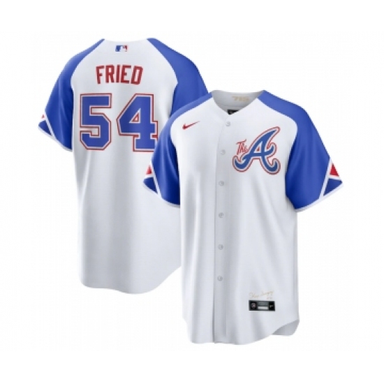 Men's Atlanta Braves #54 Max Fried White 2023 City Connect Cool Base Stitched Baseball Jersey
