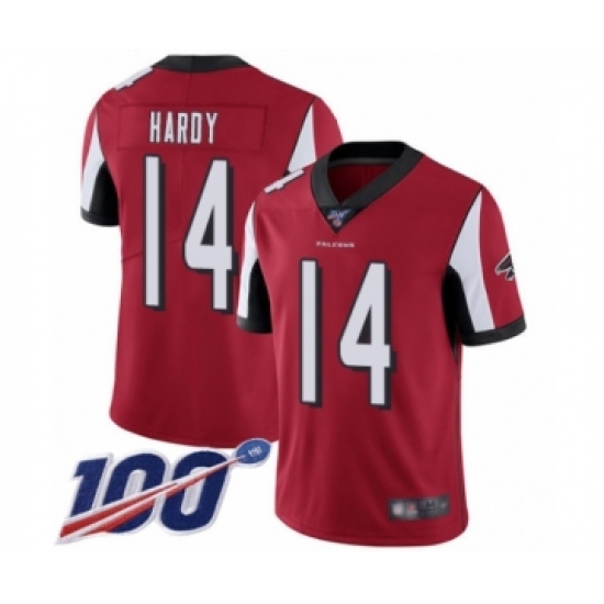 Men's Atlanta Falcons #14 Justin Hardy Red Team Color Vapor Untouchable Limited Player 100th Season Football Jersey