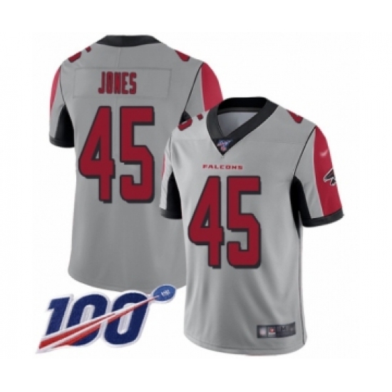 >Men's Atlanta Falcons #45 Deion Jones Limited Silver Inverted Legend 100th Season Football Jersey