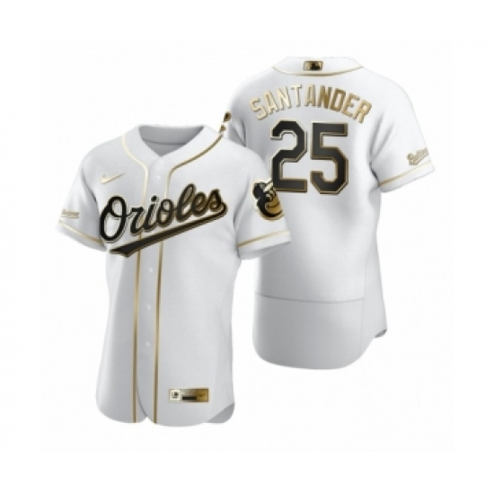 >Men's Baltimore Orioles #25 Anthony Santander Nike White Authentic Golden Edition Jersey