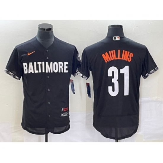 >Men's Baltimore Orioles #31 Cedric Mullins Black 2023 City Connect Flex Base Stitched Jersey 1
