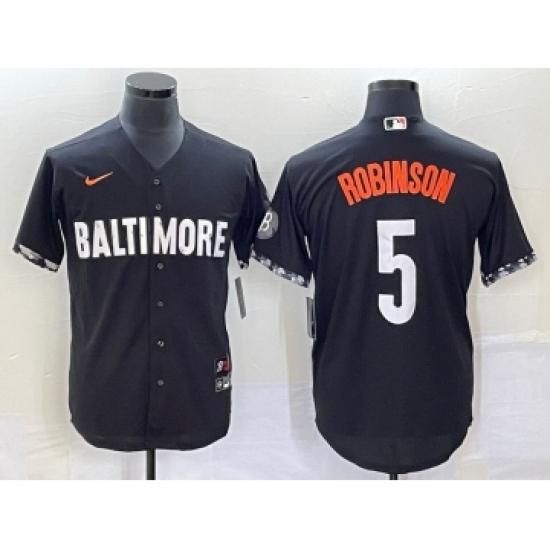 >Men's Baltimore Orioles #5 Brooks Robinson Black 2023 City Connect Cool Base Stitched Jersey
