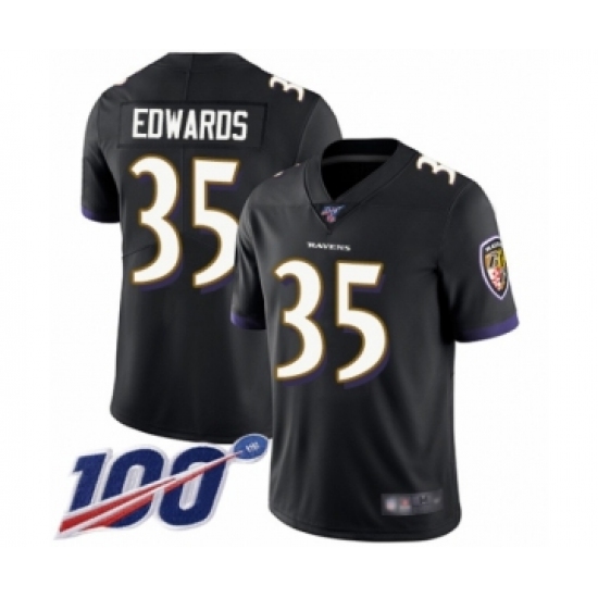 Men's Baltimore Ravens #35 Gus Edwards Black Alternate Vapor Untouchable Limited Player 100th Season Football Jersey