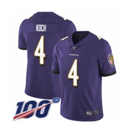 Men's Baltimore Ravens #4 Sam Koch Purple Team Color Vapor Untouchable Limited Player 100th Season Football Jersey