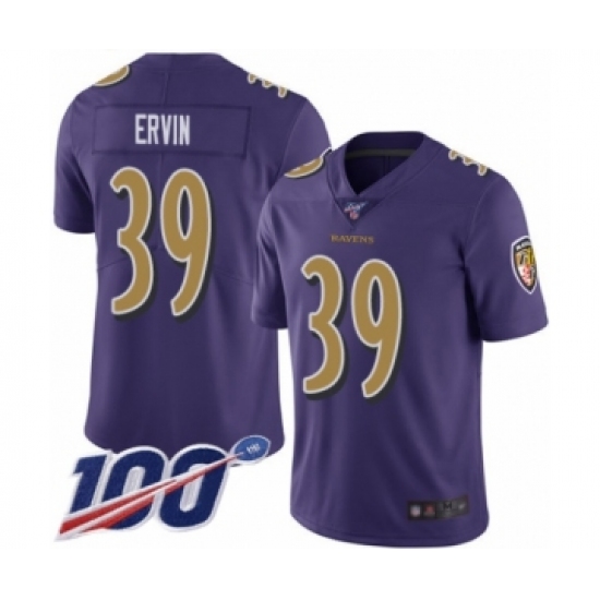 Men's Baltimore Ravens #43 Justice Hill Purple Team Color Vapor Untouchable Limited Player 100th Season Football Jersey