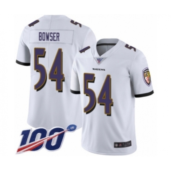 Men's Baltimore Ravens #54 Tyus Bowser White Vapor Untouchable Limited Player 100th Season Football Jersey