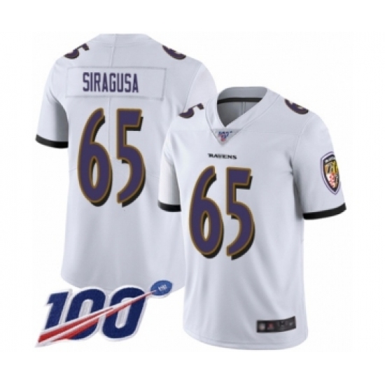 >Men's Baltimore Ravens #65 Nico Siragusa White Vapor Untouchable Limited Player 100th Season Football Jersey