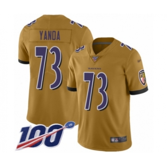 Men's Baltimore Ravens #73 Marshal Yanda Limited Gold Inverted Legend 100th Season Football Jersey
