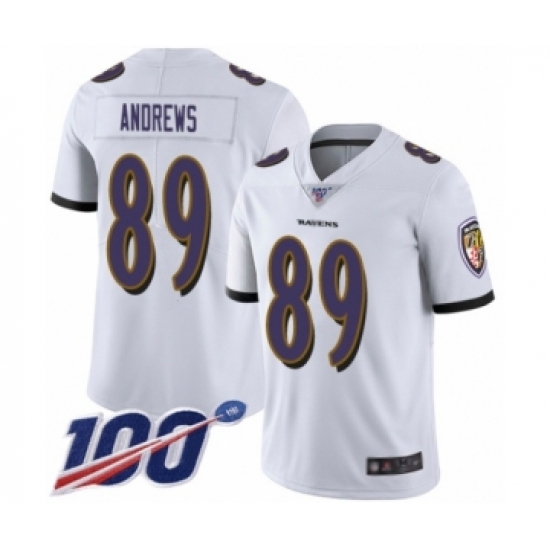 Men's Baltimore Ravens #89 Mark Andrews White Vapor Untouchable Limited Player 100th Season Football Jersey