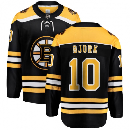 Men's Boston Bruins #10 Anders Bjork Authentic Black Home Fanatics Branded Breakaway NHL Jersey