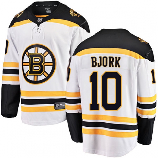Home>NHL>Boston Bruins>Anders Bjork>Men's Boston Bruins #10 Anders Bjork Authentic White Away Fanatics Branded Breakaway NHL Jersey