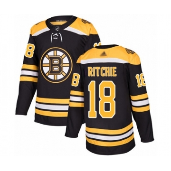 >Men's Boston Bruins #18 Brett Ritchie Authentic Black Home Hockey Jersey