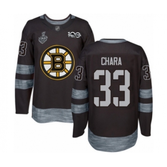 Men's Boston Bruins #33 Zdeno Chara Authentic Black 1917-2017 100th Anniversary 2019 Stanley Cup Final Bound Hockey Jersey