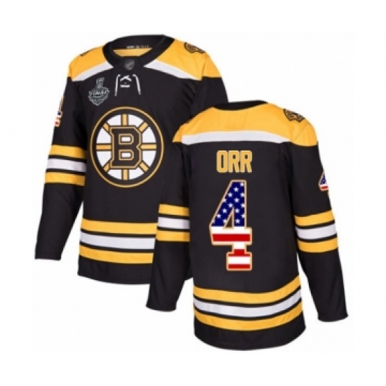 Men's Boston Bruins #4 Bobby Orr Authentic Black USA Flag Fashion 2019 Stanley Cup Final Bound Hockey Jersey