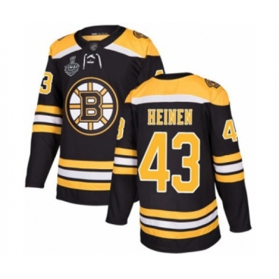 >Men's Boston Bruins #43 Danton Heinen Authentic Black Home 2019 Stanley Cup Final Bound Hockey Jersey