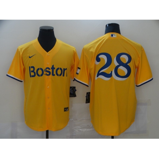 >Men's Boston Red Sox #28 J.D. Martinez Nike Gold-Light Blue 2021 City Connect Replica Player Jersey