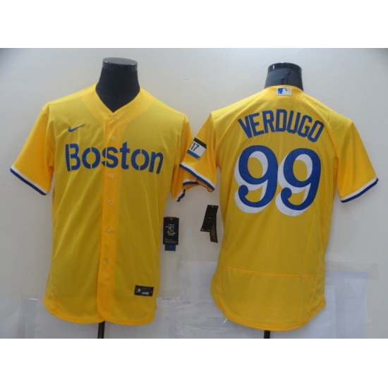 Men's Boston Red Sox #99 Alex Verdugo Nike Gold-Light Blue 2021 City Connect Replica Jersey
