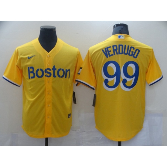 Men's Boston Red Sox #99 Alex Verdugo Nike Gold-Light Blue 2021 City Connect Replica Player Jersey