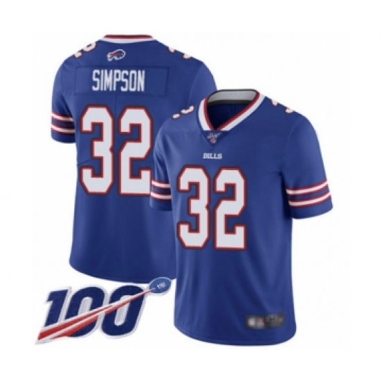 Men's Buffalo Bills #32 O. J. Simpson Royal Blue Team Color Vapor Untouchable Limited Player 100th Season Football Jersey