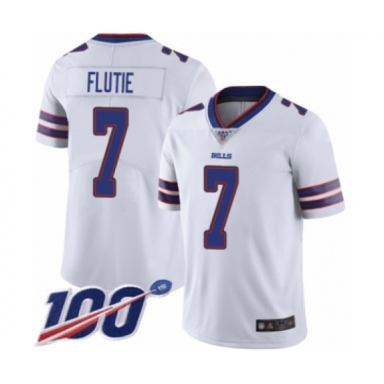 >Men's Buffalo Bills #7 Doug Flutie White Vapor Untouchable Limited Player 100th Season Football Jersey