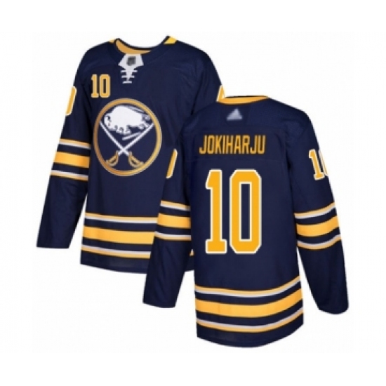 >Men's Buffalo Sabres #10 Henri Jokiharju Authentic Navy Blue Home Hockey Jersey