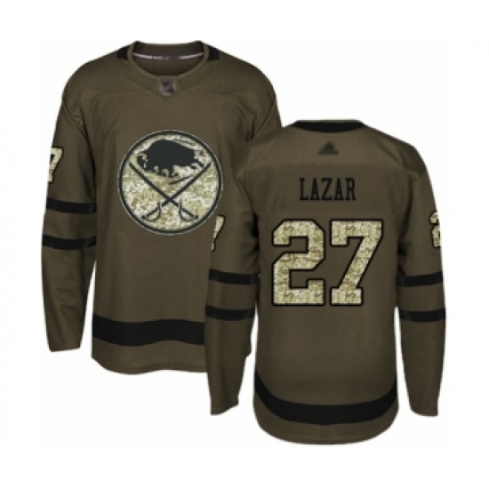 >Men's Buffalo Sabres #27 Curtis Lazar Authentic Green Salute to Service Hockey Jersey