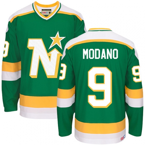 Men's CCM Dallas Stars #9 Mike Modano Authentic Green Throwback NHL Jersey
