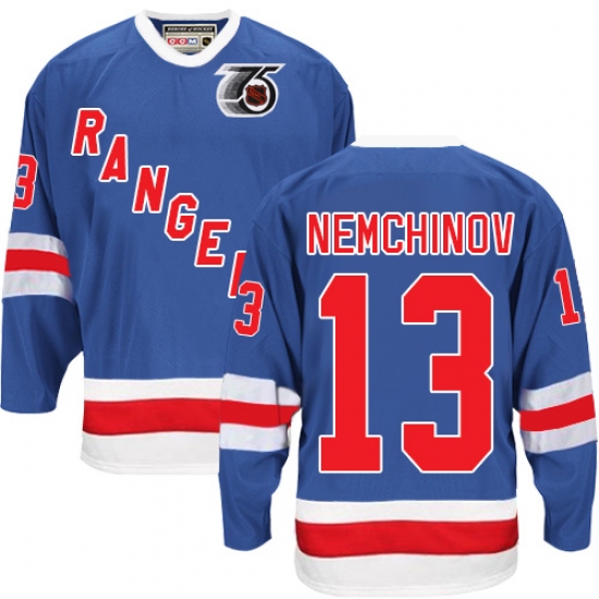 Men's CCM New York Rangers #13 Sergei Nemchinov Premier Royal Blue 75TH Throwback NHL Jersey