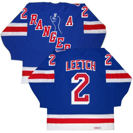 Men's CCM New York Rangers #2 Brian Leetch Authentic Royal Blue New Throwback NHL Jersey
