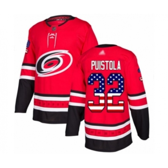 Men's Carolina Hurricanes #32 Patrik Puistola Authentic Red USA Flag Fashion Hockey Jersey