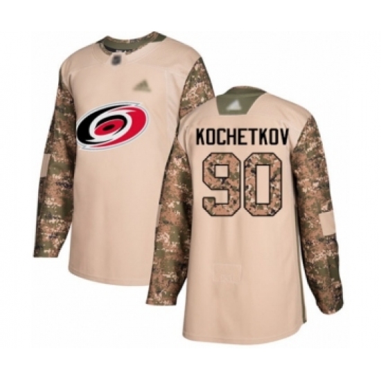 >Men's Carolina Hurricanes #90 Pyotr Kochetkov Authentic Camo Veterans Day Practice Hockey Jersey