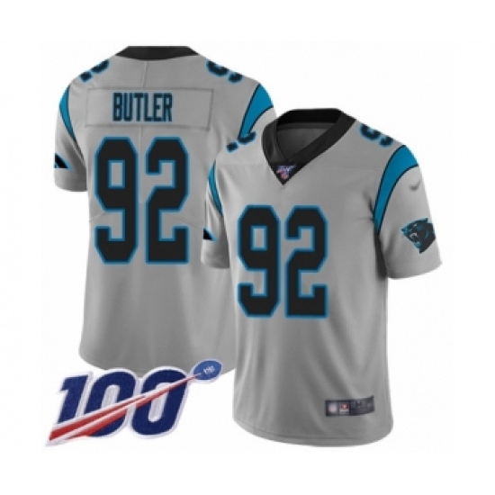 Men's Carolina Panthers #92 Vernon Butler Silver Inverted Legend Limited 100th Season Football Jersey