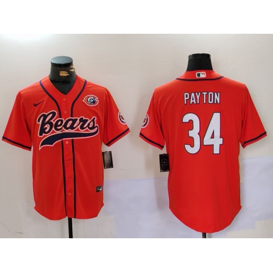 >Men's Chicago Bears #34 Walter Payton Orange Throwback With Cool Base Stitched Baseball Jersey