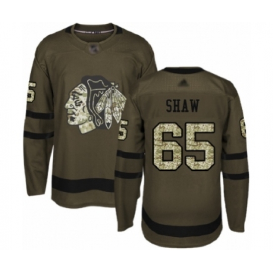>Men's Chicago Blackhawks #65 Andrew Shaw Authentic Green Salute to Service Hockey Jersey