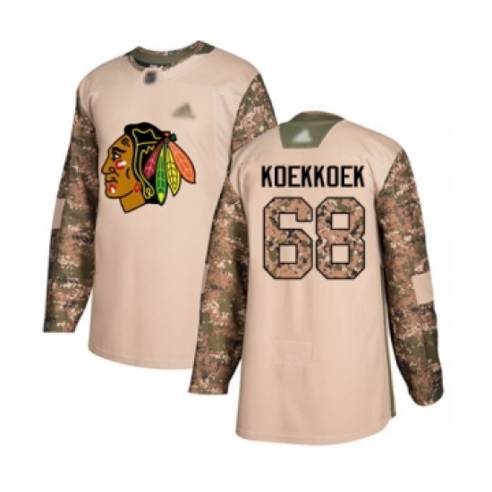 Men's Chicago Blackhawks #68 Slater Koekkoek Authentic Camo Veterans Day Practice Hockey Jersey